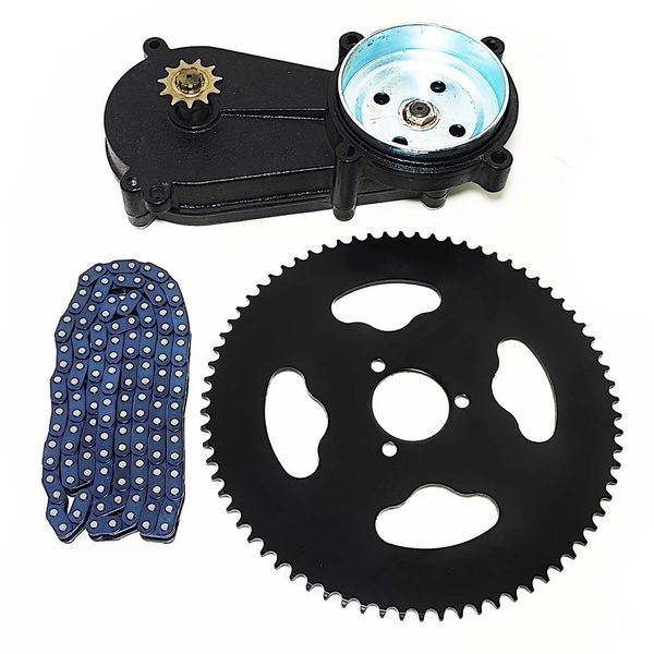 Комплект для переробки велосипеда в мотовелосипед. Використовується для установки двигуна від мотокоси або бензо тримера на звичайний велосипед, щоб перетворити його на транспортний засіб з тягою від двигуна внутрішнього згоряння. ланцюги набору T8F (не плутати з велосипедним, там 12.7 мм) досить міцний і не видає великого шуму, хоча встановлюючи набір з довгим ланцюгом бажано додатково встановлювати заспокійник або натягувач ланцюга Якщо є бажання зібрати велосипед, який може їздити і без мотора, просто педалей, радимо провідну зірку встановити на обгінну муфту (фривіл, тріскачку) Така модифікація дозволяє використовувати залізного коня за призначенням у разі поломки мотора, приводу або палива, що просто закінчився, в баку.